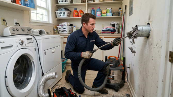 Clear lint and blockages to enhance dryer efficiency and reduce fire hazards.